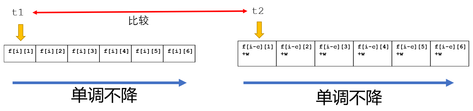其中\(k1-1+k2-1=j-1\),因为前\(k1-1\)个数和前\(k2-1\)个数凑成了\(f[i]\)的前\(j-i\)优解,就是归并的思想。假设第一个队列为\(f[i][]\),第二个队列为\(f[i-c][]+v\),我们每次取最优的那个,当\(f[i][1]\)弹出后,就用\(f[i][2]\)和\(f[i-c][1]\)比,类似归并把答案存在另一个数组中(防止冲突),最后再\(\tt copy\)回\(f[i]\)的前\(k\)优解。