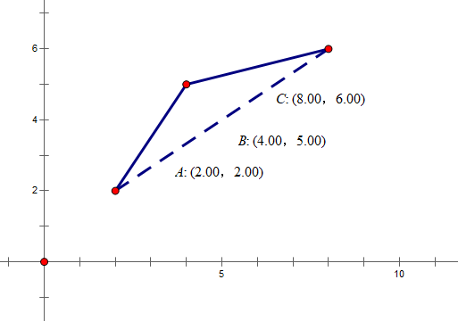 同时,为了保证凸壳,边界上的点不能上凸,像这样的点B就是不合法的: